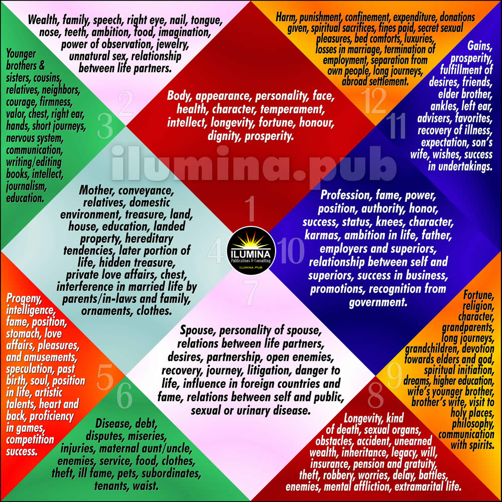 Different aspects of life signified by each of the 12 Houses in the Horoscope.